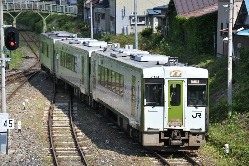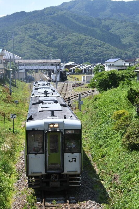 遠野駅に進入する快速「はまゆり」キハ110が3枚目。