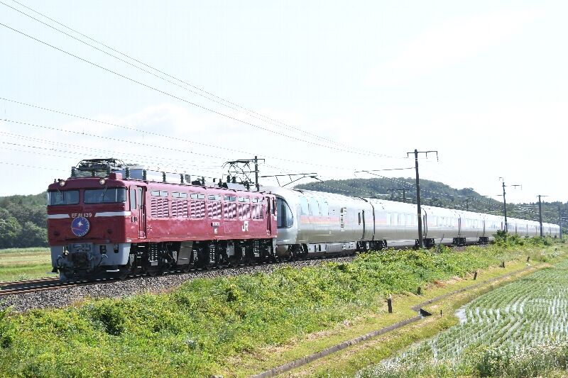 撮ったのが4枚目、釜はEF81-139+E26系でした。