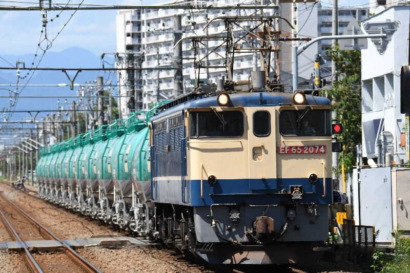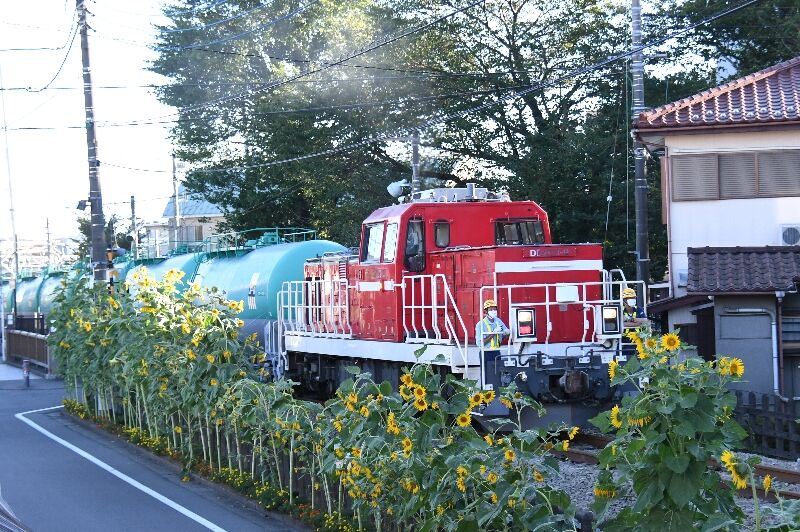9/6 EF65米タン昨日はEF65米タンも久しぶりに走りました。日鐵チキ前に撮影しました。 青梅線で8078レの横田基地タキ返空が1枚目で釜は EF65-2074+タキでした。 夕方に再びジェット燃料満載の8079レを青梅線にて捉えます。 拝島に着くEF65米タンが2枚目で釜は同じくEF65-2074号機。 オシロイバナも入れましたが目立ちません! 専用線には向日葵も咲いてますので、専用線にも先回りします。 向日葵とDD200-9による米タンが3枚目です。