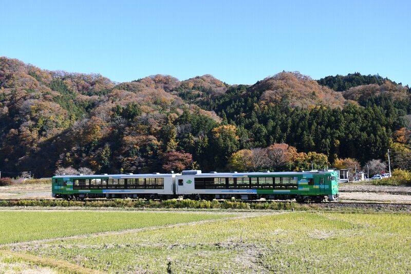 瓜連停車を利用して瓜連駅に戻って停車中の紅葉風っこ2号が3枚目。
