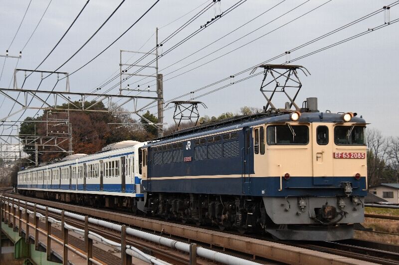 12/17 西武甲種(EF65-2085)本日は西武甲種がありましたのでドン曇り(露出が・・)ですが参戦! 八王子到着を浅川鉄橋で狙います。西武甲種は伊豆箱根カラーで 9267レの牽引釜は1枚目のEF65-2085+新101系241Fでした。 おまけは回送の211系が2枚目、すぐに撤収しました。