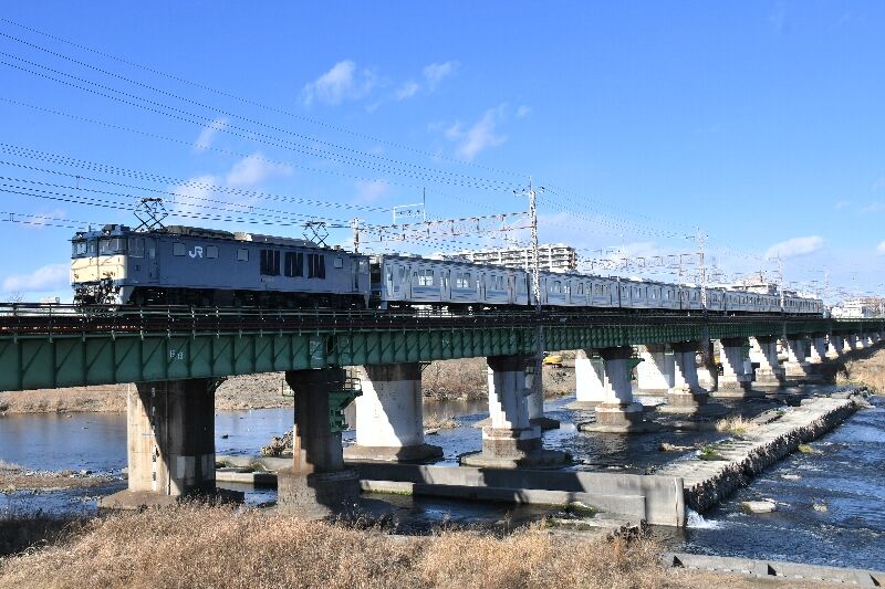 1/25 相模線205系廃車回送本日は相模線の205系が国府津から長野に向けての廃車回送が ありましたので、多摩川鉄橋に出向きました。 205系500番台のR8+R13編成が長野に向けて廃車回送(配給)。 その遠景が1枚目で牽引釜はEF64-1030+205系8Bです。 近景が2枚目で長野にドナドナされて行きました。 終わってから貨物も撮りましたが、次の日記にて!