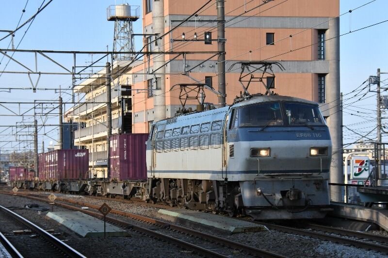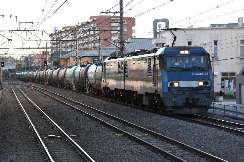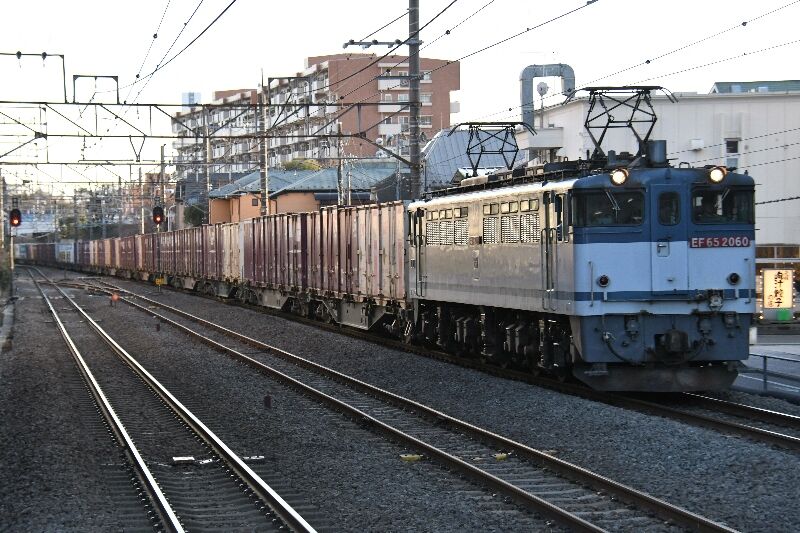 2/11 西国分寺夕練 貨物列車今日は夕方の買い物ついでに足を延ばして西国分寺でチョイ鉄。 駅に着いたらすぐにブルサンが登場したのが1枚目。 釜はEH200-21+タキの石油輸送でした。 続行貨物の77レを撮ったのが2枚目で、釜はEF65-2060号機更新色。 反対側に移動して74レのEF66-116号機が3枚目。