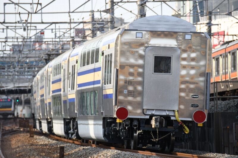 3/16 E235系1000番台グリーン車 甲種輸送昨日はE235系1000番台の配給がありましたが、同日にE235系の グリーン車甲種輸送もありましたので移動して撮影します。 府中本町にてお迎えしますが、遠景の写真が1枚目。 9771レの釜はEF65-2060+E235系グリーン車4Bです。 近景が2枚目でF25・F26編成に使用されると思われます。 後追いしたのが3枚目のグリーン車でこの日はE235系新車の ダブルヘッダーでした。ダイヤ改正も明日でPFの77レなども 撮りましたので次の日記にて!