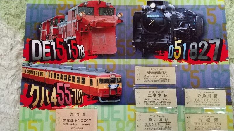 えちごトキめき鉄道 555記念入場券江ノ電に続き令和5年5月5日の555記念入場券を、色々企画していて 鉄ちゃんに優しい「えちごトキめき鉄道」で購入しました。 その555入場券が1枚目で、5駅の入場券と急行券のセットです。 最近は和暦を西暦に変える鉄道会社が多くて、昔のように楽しみが 減りましたが、和暦の会社は来年以降も楽しめるようですね!