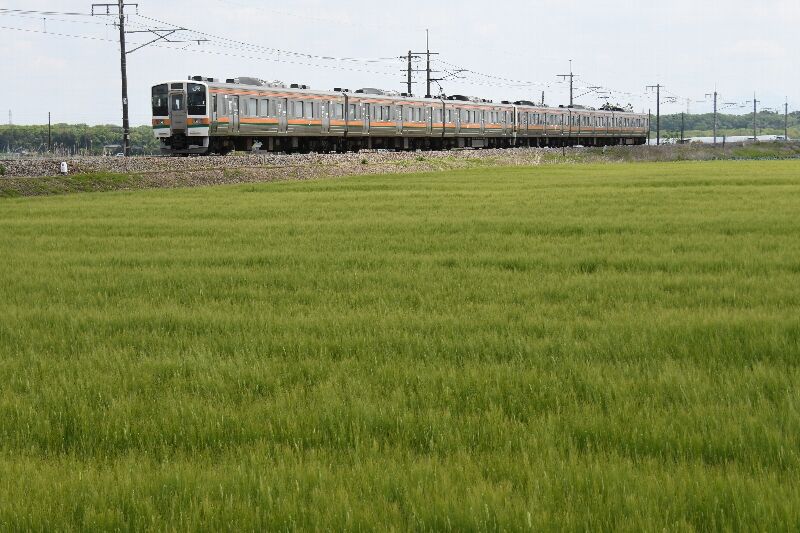 麦畑の中を行く211系を後追いしたのが3枚目です。