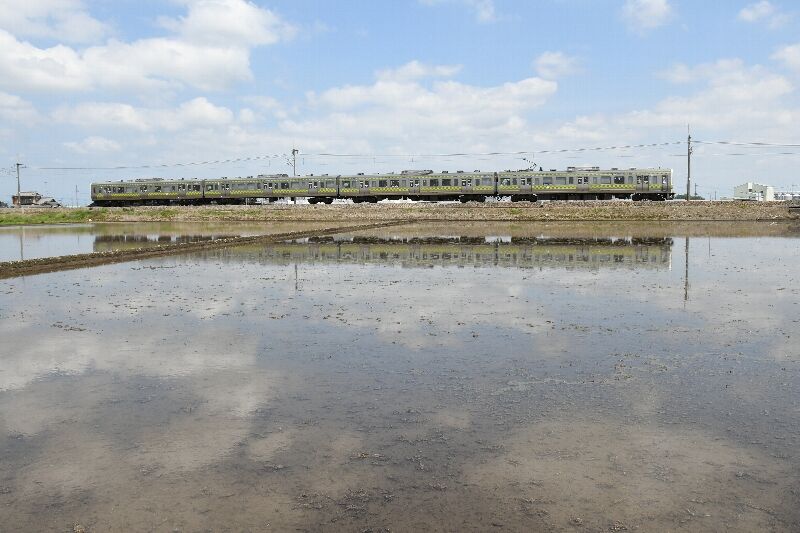 田んぼの水鏡のサイド撮影が1枚目の211系A28編成。