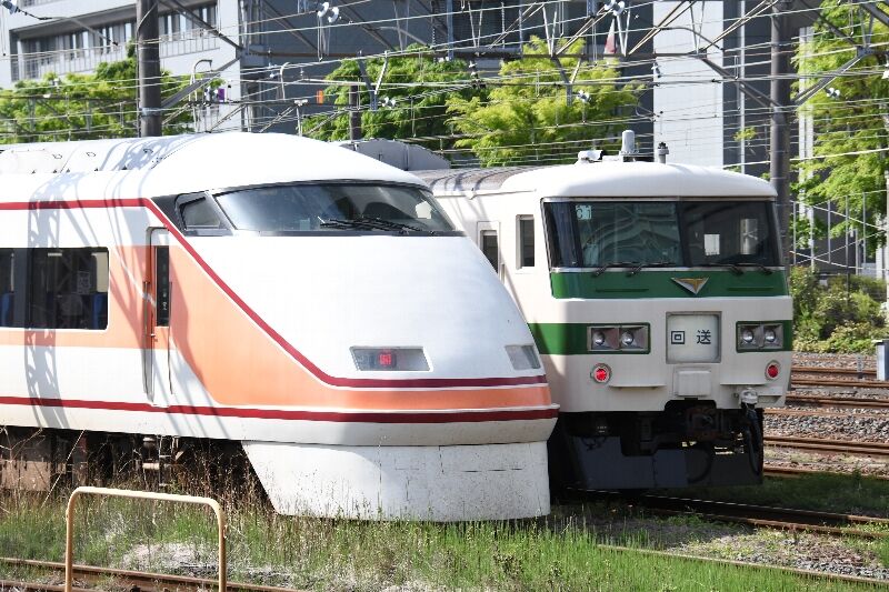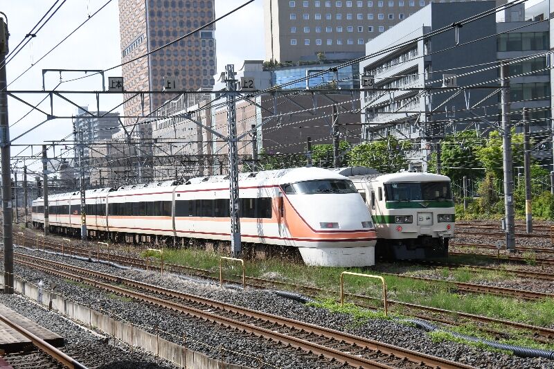 そして出発時の大宮操で東武100系スペーシアと185系C1編成の
