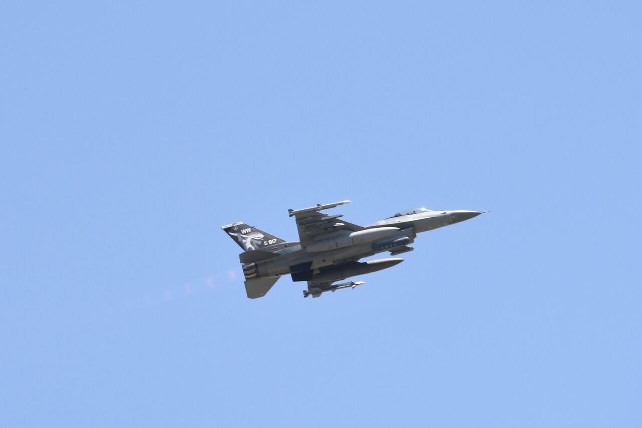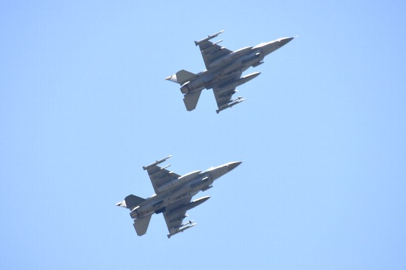 2機で並走しているF-16の姿を下から捉えたのが4枚目。