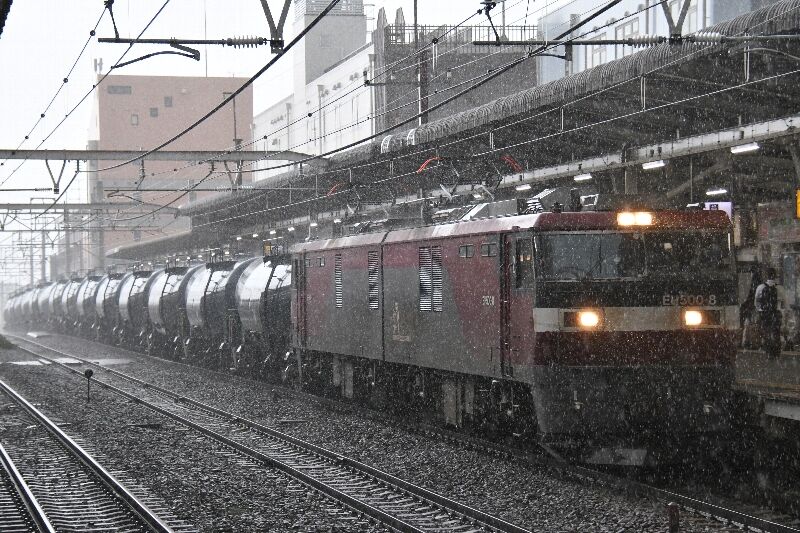 桃太郎から50分ほどで天気は急変、釜はEH500-8号機でしたが、