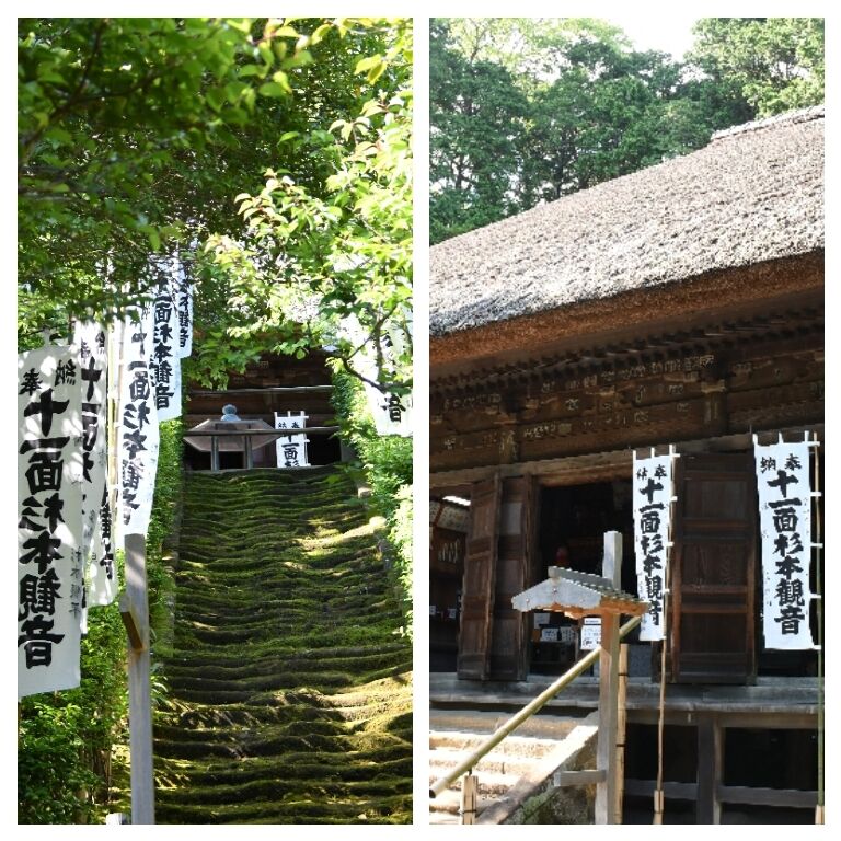 苔むす階段は相変わらず綺麗で、茅葺屋根の本堂も歴史を感じます。
