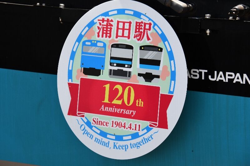 後ろのヘッドマークを撮影すると「蒲田駅開業120周年」が4枚目。