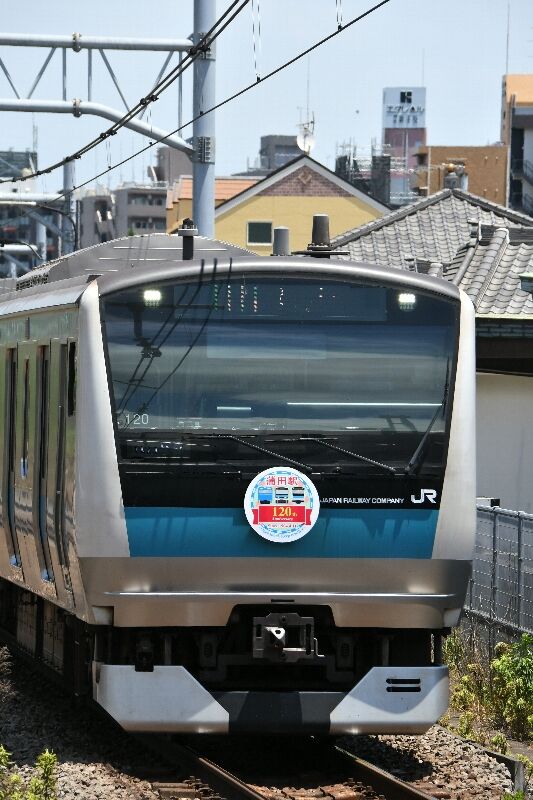 103系、209系、E233系のイラスト付きでE233系120編成。