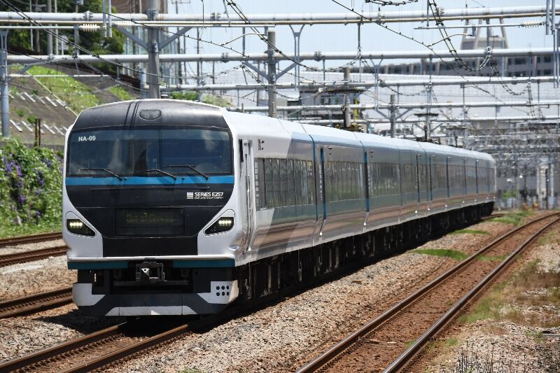 待ち時間に撮影したのは、E257系2000番台NA-09編成回送が1枚目。