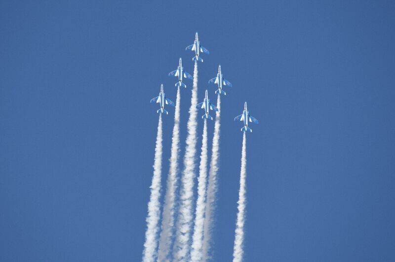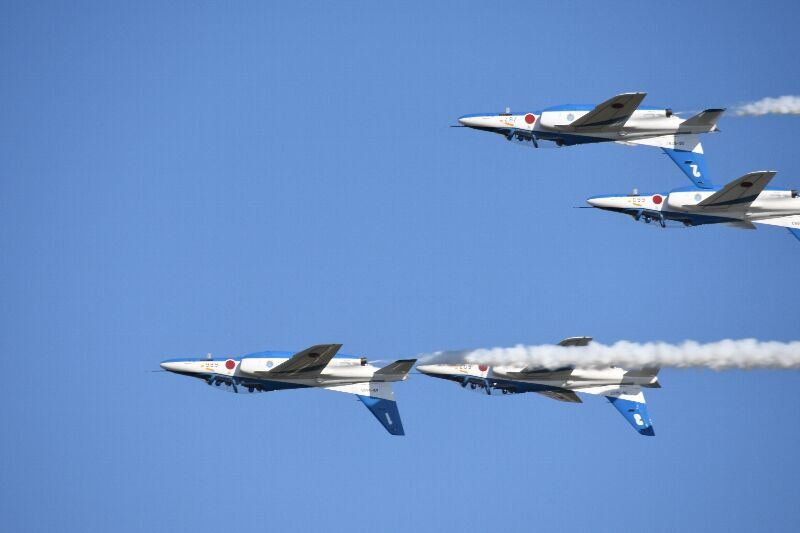 11/3 入間航空祭 T4ブルーインパルス今日は天気も回復したので、入間航空祭に参加! 隣接駅まで車で移動して入間基地に! 他の航空機はおまけ編にてで、ひとまずT4ブルーインパルスの アクロバット飛行の写真を列記します。 展示のブルーインパルスを撮るのも一苦労、陣取っている人は 動きません。後ろにはCH-47Jの姿も。 色々な形態でスモーク飛行です! 背面飛行は凄い! 編成を整えての飛行間隔は凄いです。 トルネードや円は残スモークが綺麗でした。 ハートや星も描いてくれました。 僅か1週間弱で、陸海空の乗り物を撮ることが出来ました。