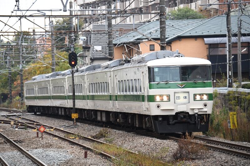 11/21 185系C1編成 集約臨今日は南武線から日光に向けて修学旅行の集約臨があり参戦! 武蔵野線で185系集約臨を待ちます。定刻に来た185系C1編成が 1枚目で、幕は「団体」でした。 ズームを引いて近景が2枚目、185系もこれが最後の撮影かな? 後追いしたのが3枚目で日光に向かって行きました。 この後は255系大宮工場回送を見に行きました。明日の日記にて!