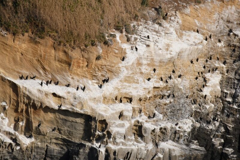 長年の糞の蓄積により断崖の一部が白く変色していると思われます。