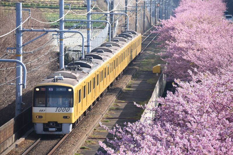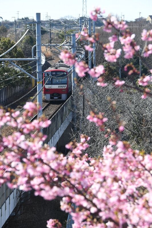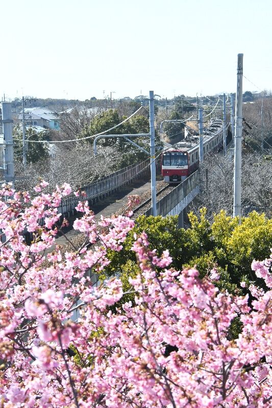 三浦海岸の河津桜と京急の姿を捉えるのは厳しそうです。