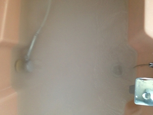 時間の経過とともに、浴槽のお湯が超微粒子の泡で白濁し、