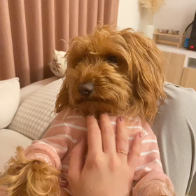 犬は信頼した人の抱き枕になってくれるらしい