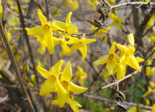<画像左から水仙、ユキヤナギ、レンギョウ>