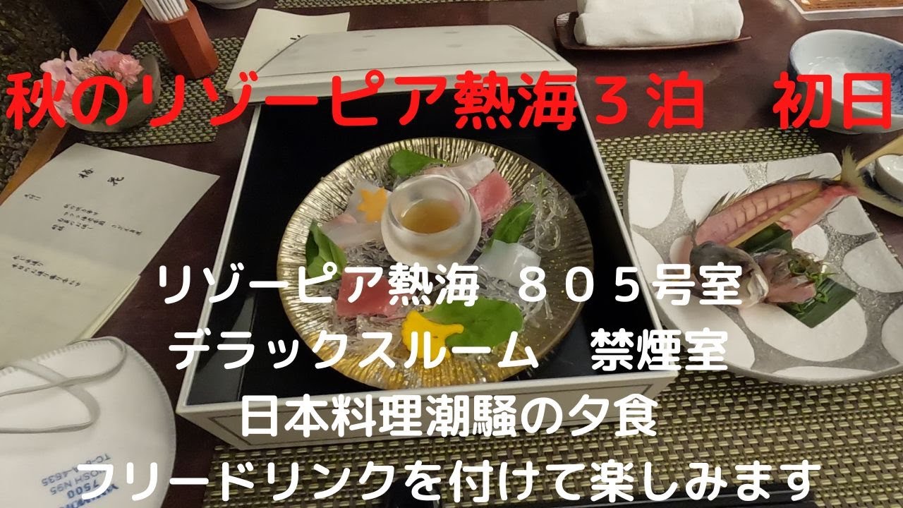 秋のリゾーピア熱海3泊 リゾーピア熱海 805号室 デラックスルーム 禁煙室 日本料理潮騒の夕食 フリードリンクを付けて楽しみます