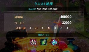 30分経過後。という訳で、特訓クエスト合計1時間(食材パック28個)で