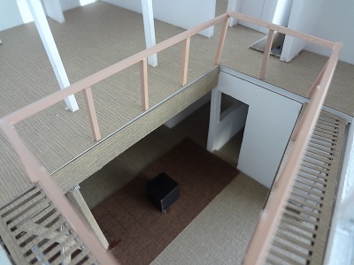 ・そこから吹抜縁に行けるよう、L型平面の吹抜縁の角に穴