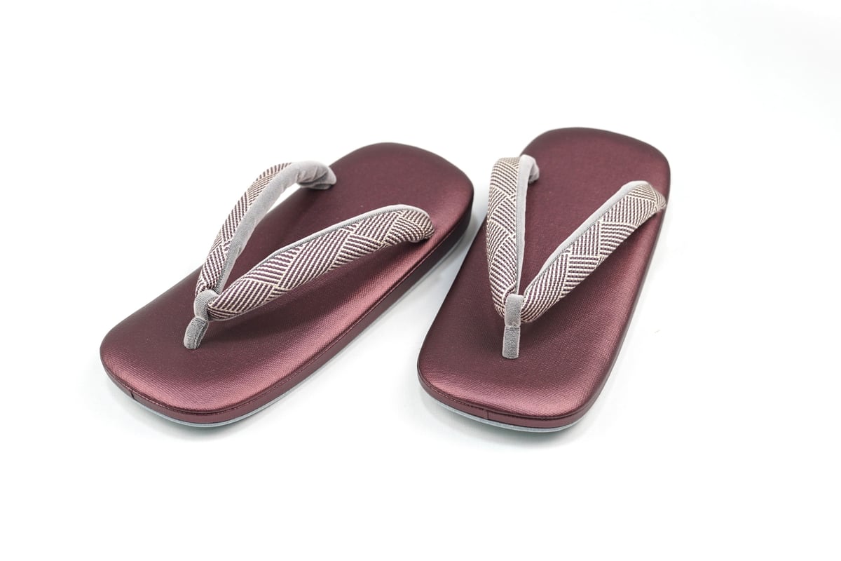 男草履「帆布表・真田紐鼻緒・ボルドー」ボルドーカラーに染めた帆布生地を草履表に使い、鼻緒はそれと同系色の真田紐で組み上げた鼻緒に使ったものを挿げました。 色目は落ち着いたボルドーカラー。 光沢感がある表は、お履きになった時に少し覗く色目として楽しい色となります。 鼻緒は真田紐で仕上げた一組。 こちらもシンプルななかに光る仕事の良さが、足元からお客様のセンスを引き立ててくれます。 カジュアル傾…kimono-minoko.stores.jp