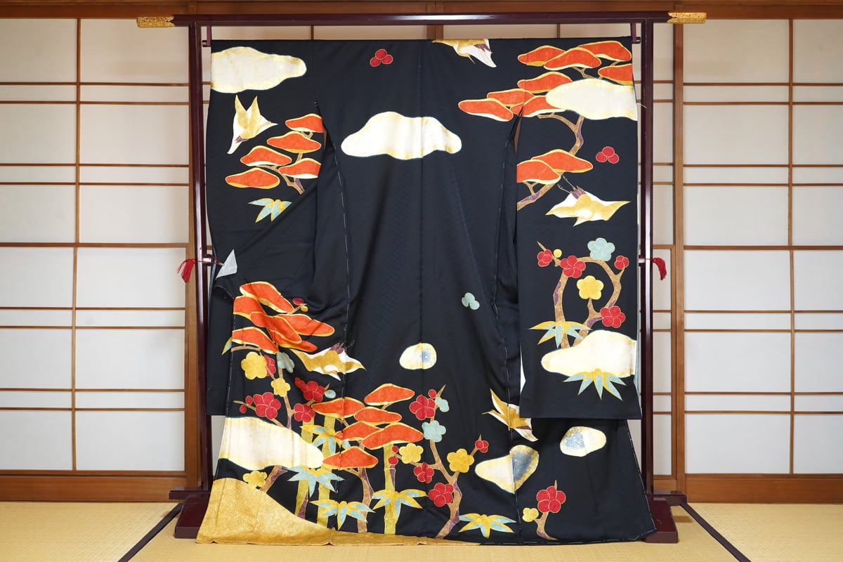 振袖「松竹梅飛翔鶴」成人式の衣裳としてだけでなく、結婚式の花嫁衣裳としても使って頂けるであろう、豪華で品格を持った振袖を紹介します。 菱形の地模様の白生地を黒に染め上げ、豪華かつ大胆な構図で松竹梅と空を翔ぶ鶴を描いた一品。 他にはない存在感と、先述した通りの振袖としての品格を持ち合わせた仕上がりの一品になります。 全体にかなり大胆な構図で配された松竹梅。 またその合間を…kimono-minoko.stores.jp