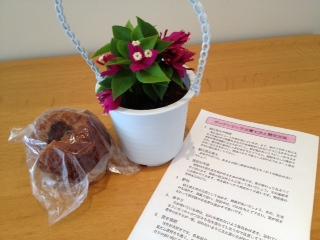 スタッフは紅芋アンダギーと母の日へのプレゼントにブーゲンビリアを購入していました