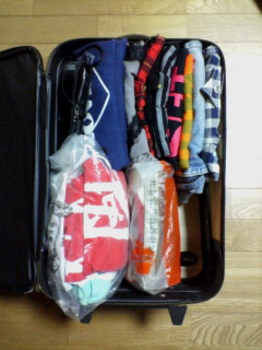 3泊4日でライブも2回だから、Tシャツやらタオルやらスニーカーで荷物が多いわぁ。カバンの中もギュウギュウだよ。