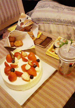で、コンビニで酒やらお菓子やら買い込んでホテルへ。今日はちえさんのバースデーだからさ、ひそかにケーキを用意しておいたのよ☆