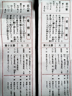 画像は生田神社で2005年と2006年にひいた『恋みくじ』。