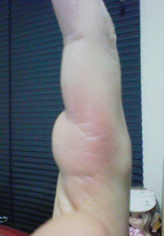 画像は昨日、手拍子しすぎた時に指輪があたって痛くした手。わかりにくいけど右手の人差し指を横から撮ったもので、指の付け根が腫れて痛いです。ハンドクリーム擦りつけただけでも痛いです。