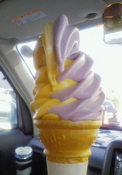 ブルーシールのソフトクリーム、すげぇおいしかった☆私はマンゴーと紅芋のミックスにしたんだけど、とにかくマンゴー味のパンチが強く、紅芋の味はほとんど感じなかった・・・。次はマンゴー一色でいいな(笑)