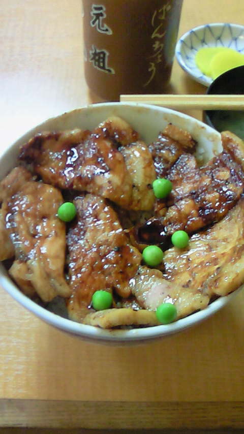 昨日食べて、今日の朝も豚丼食べたけど、やっぱりぱんちょうのほうがおいしかったな!