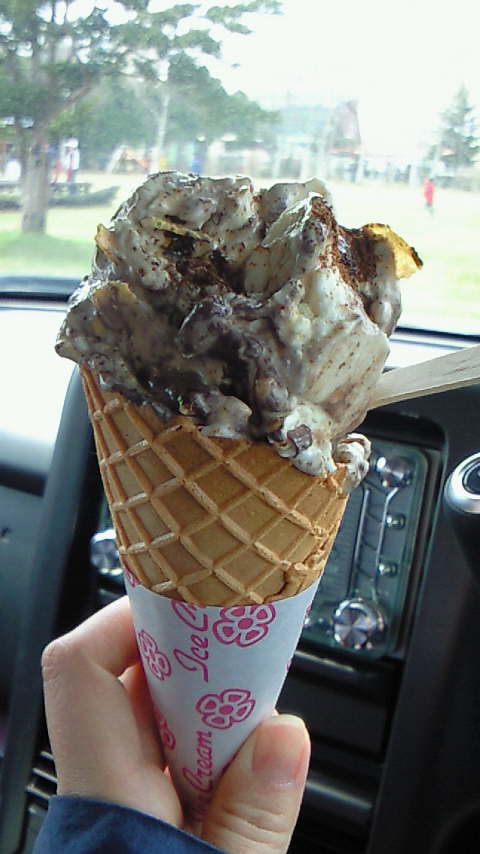 これが行く途中に食べたアイス。今のところ、ここのお店より感動したアイスはありません・・・。今回は、ホワイトコーヒーというアイスをベースに、クリームチーズやラムレーズン、ピーナッツ、チョコクランチ、コーンフレーク、コーヒーパウダー、コーヒーリキュールを混ぜ込んだ感じで、ちょっと大人な味わいにしてみました♪