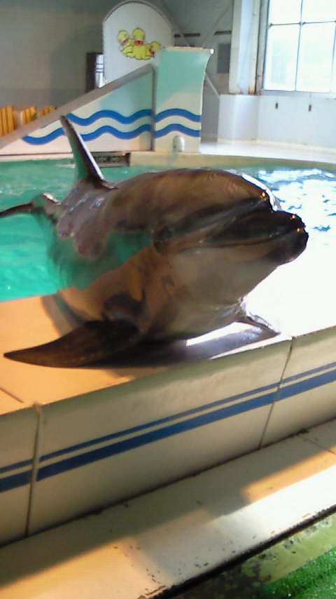 短い時間だったけど、ショーが終り席を立って帰ろうとしたら、またイルカがお立ち台に来てくれた!サプライズだ☆