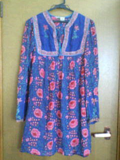 その後、古着屋をちょろめいて、画像のミニワンピを購入♪あんまりエスニック風って好きじゃないんだけど、色と形とチャイナっぽさにやられて☆