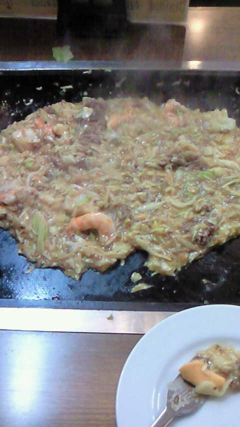 鉄板ってあんまりちゃんと洗うイメージがなくて、拭くだけってイメージなんだけどさ、口つけたヘラを直に鉄板にこすりつけて食うわけだからさ、なんかちょっとアレだよな・・・とか、また変なところだけ潔癖な性格が顔を出したので、あんまり考えないようにした。