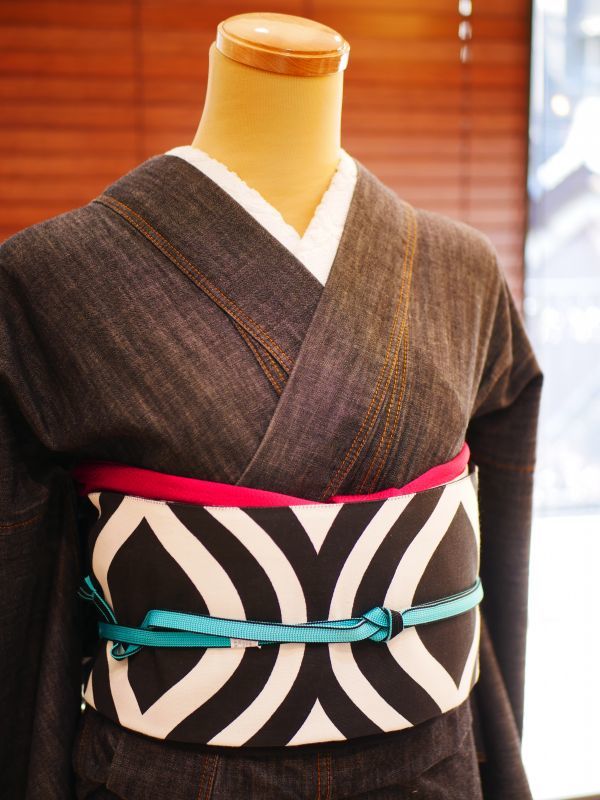 デニム着物は、モノトーンでカッコ良く仕上げても、