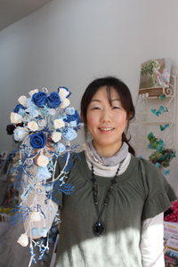又ゆれるブーケのプリザの修了レッスンでブルーの素敵なブーケができたのはいとうさんです。