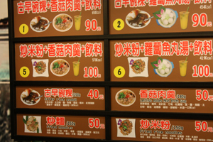 この⑤のセットを頂きました。このセットで100元とは!日本円で300円くらいという事。ありえな~い。台湾焼きビーフンとなんかのスープ