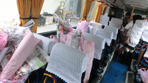 想定の人数を大幅に上回りましたが日本から持参のフロールエバーさんのプリザーブドフラワーをつかいローズメリアのアレンジメントを作りました。