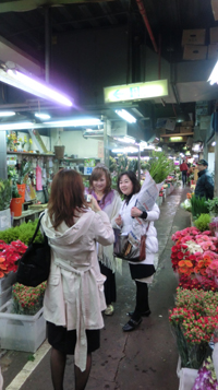 ショーで使う花をあらかじめ注文しておきますがそれ以外にはいつも海外はそうですが現地その場の花を見て決めていきます。