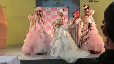 モデルさんが次々にKAORUKOブランドCawaiiドレスを着て登場し私の作るブーケを持ちCawaiiをPRします。