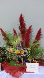 参加者の皆さんも花博会場で作品展をしていただくので思い思いのデザインを考えます。決められた時間で花を買い器を決め本数も決めデザインも決めスリル満点の皆さん。