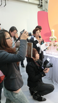 こちらはマスコミ記者会見を待ちわびる記者たちです。台湾の多くのマスコミが来てくださり、いろいろなインタビューが行われました。