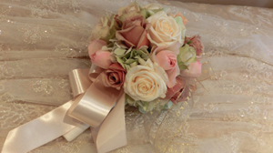 きめ細かい美しい肌にベージュの花達が良くお似合いです。